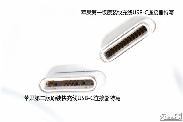 蘋(píng)果兩代快充線USB-C接口特寫(xiě)